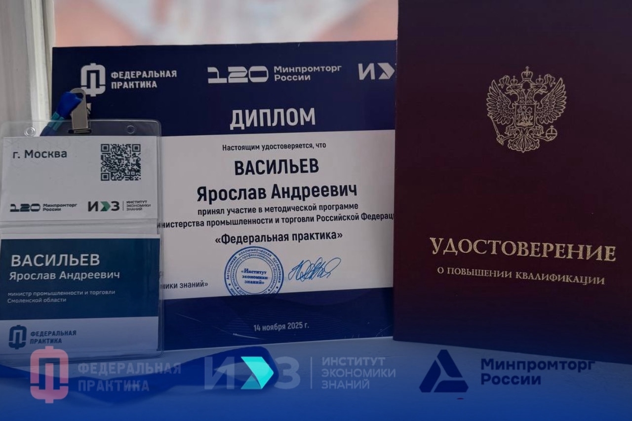 Ключевым преимуществом обучения министр назвал прямые контакты: за время очного модуля в Москве смоленская делегация пообщалась с коллегами из 18 регионов, экспертами Минпромторга и даже с федеральным министром Антоном Алихановым.