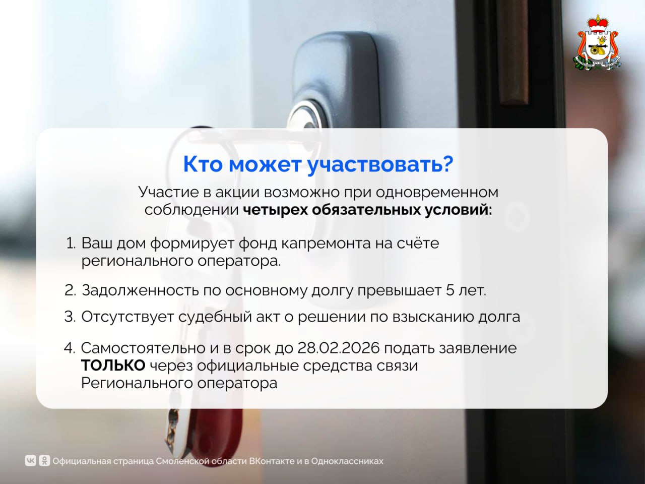 Жители Смоленской области, много лет копившие долги за капитальный ремонт, получили шанс. Региональный оператор объявил о разовой акции по полному списанию пеней. Условие одно — основной долг должен превышать пять лет, а дом должен формировать фонд на счёте оператора.