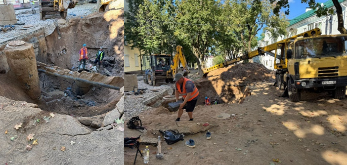 Параллельно на объекте велись работы по замене водопроводных сетей, что осложняло проведение благоустройства. Кроме того, 9 августа случилось ЧП. При прокладке коммуникаций методом ГНБ (горизонтально направленного бурения) под улицей Тенишевой произошло повреждение подземных сетей. Устранение этой аварии также привело к задержке в работах по благоустройству.