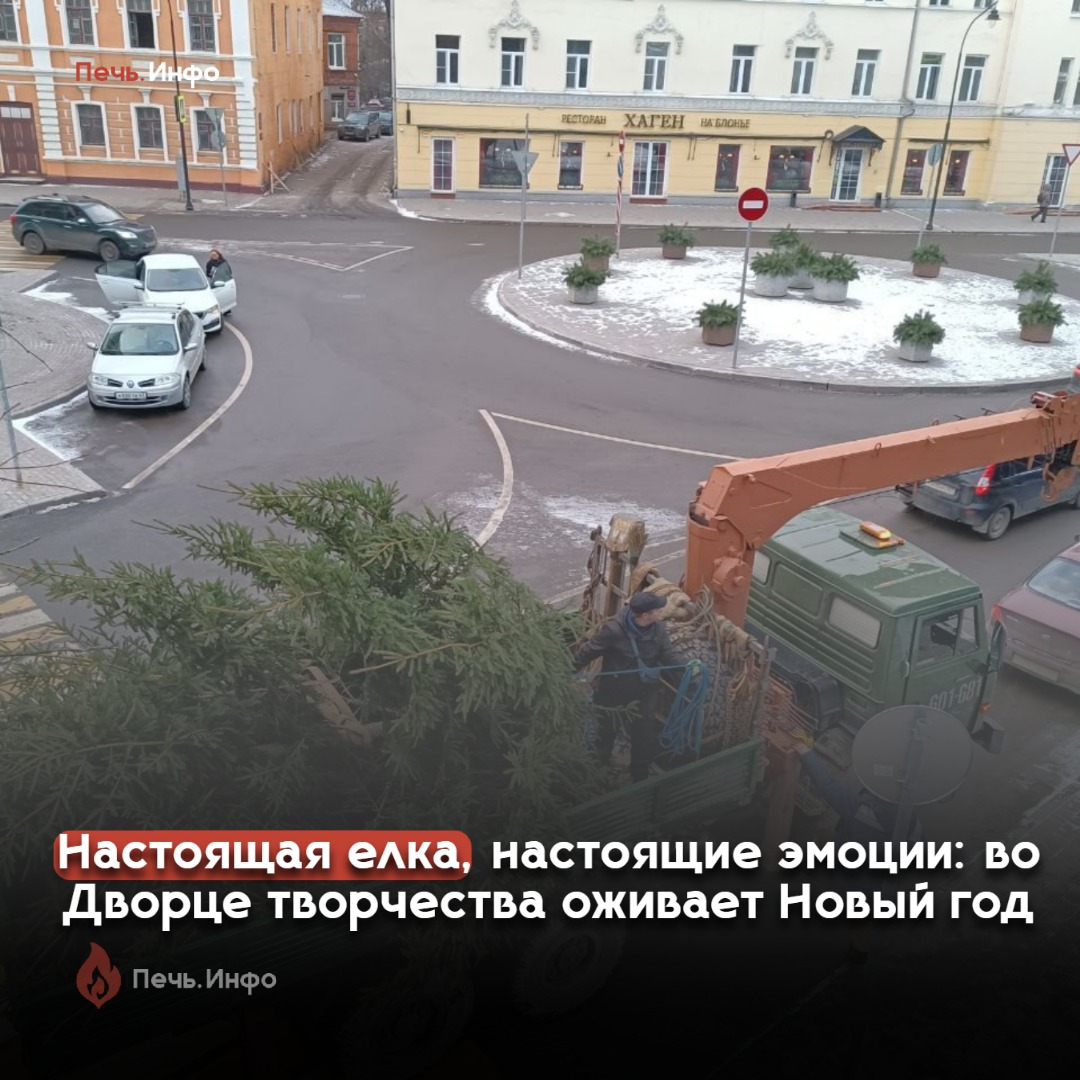 23 декабря «Печь.Инфо» вместе с сотрудниками дворца отправилась за елкой, после чего зеленую гостью доставили в здание и установили необычным способом: через балкон — в самом сердце старинного учреждения, в актовом зале. Как отмечают во дворце, день приезда елочки — всегда особенный. Именно с этого момента праздничная подготовка выходит на финишную прямую. О новогодней традиции рассказала нашему изданию заведующая организационно-массовым отделом Дворца творчества и молодежи Наталья Фролова: